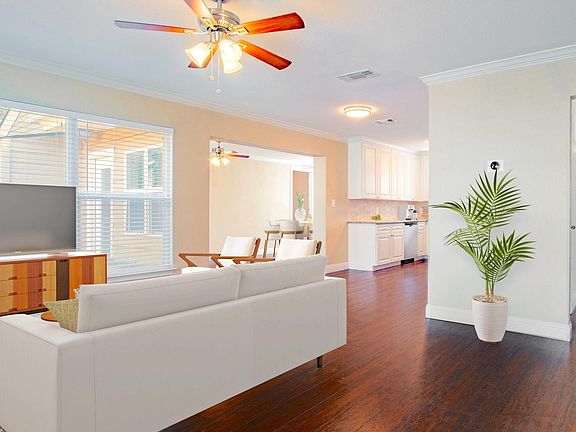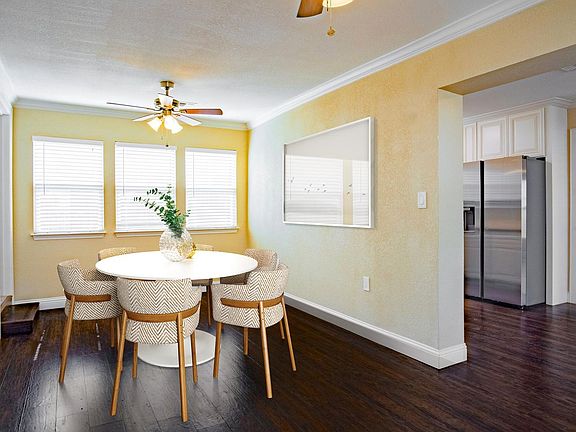Large backyardSeparate dining roomWood-look laminate floorsStainless steel appliancesCeiling fansAir conditioningGranite counters