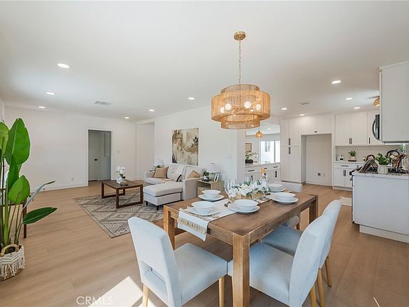 Welcome to this beautifully renovated single-story home, where modern design meets luxurious comfort. Located in a highly desirable neighborhood in Long Beach, CA. This stunning property boasts a spacious open floor plan with 4 generously sized bedrooms and various premium features that elevate your living experience. Two full bathrooms have been tastefully renovated with modern mid-century touches. Step inside through a beautiful wood door and be greeted by the inviting ambiance, enhanced by recessed lighting, new white interior/exterior paint, all new windows, and premium laminate wood flooring throughout the home. The heart of this home is the chef-inspired kitchen, complete with gleaming quartz countertops, all-new stainless steel appliances, custom shaker-style slow-close cabinetry, and a custom peninsula with a waterfall finish perfect for both cooking and entertaining. There is a warm and inviting family room and a separate formal living room, which features a beautiful fireplace, providing a perfect setting for relaxing. Enjoy the private and cozy backyard to host all of your special gatherings. The 2-car detached garage has been finished with drywall and new paint that can be used for an additional entertaining/hobby area. With its thoughtful design, premium finishes, and a fantastic layout, this home is the perfect blend of modern living and comfort. Don't miss this chance to make this property your DREAM HOME!