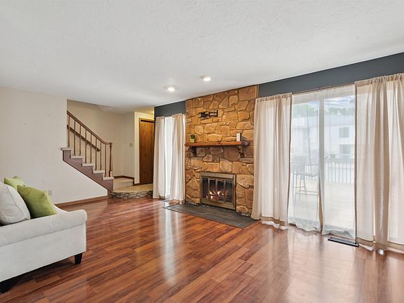 This exceptional property in Timberline condominium complex with the scenic pond, three-hole golf course and clubhouse with desirable corner unit. Main floor features charming living with laminated wood flooring, fireplace and sliders opening to a delightful deck. Kitchen with black cabinetry, spacious dining room and half bath. Three bedrooms, 2 bath upper floor is highlighted by a master bedroom graced with half bath and walk in closet. All-purpose lower level has family room, laundry area and plenty of storage space and attached double garage. Nestled in the picturesque Timberline setting, will soon become some fortunate owner's paradise. Condo fees include water, sewer, garbage, snow removal, lawn care and exterior insurance of the property.
