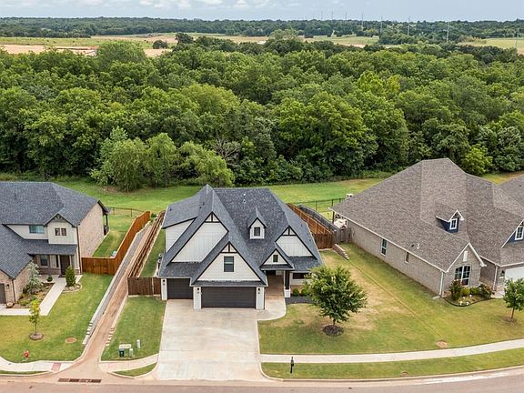 From the moment you arrive, the stately curb appeal and expansive front patio set the tone for what’s inside. Step through the front door into a grand foyer with soaring vaulted ceilings and wood beam detailing that draws your eye upward. The open-concept floor plan is designed for connection and comfort, centered around a floor-to-ceiling painted brick fireplace and a wall of windows that invite the outdoors in—framing uninterrupted views of the vast wooded backdrop.