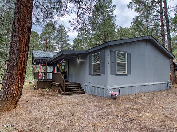 MOUNTAIN COMFORT MEETS SPACIOUS LIVING IN THIS MANUFACTURED HOME IN PINETOP COUNTRY CLUB MOBILES! This 4 bedroom, 2 bath home has a generous1904 sq. ft. of living space and has a great-for-entertaining floor plan that is ready to be yours! There are two fireplaces (one has never been used)—one in the large living area AND one in the large great room. It has a split bedroom floor plan with the Master Bedroom and Master Bath on one side of the home and the other three bedrooms and bathroom on the other side of the home which is great for privacy and functionality. The kitchen has updated appliances and an island for preparing foods or can be used as a breakfast bar. The Dining Area is between the kitchen and the great room...perfect for entertaining or everyday feasts! There is natural gas and electric heating and a portable air conditioner for those rare warm nights. There is a large covered deck and an open deck to sit and enjoy the beautiful trees and beautiful natural surroundings. There is an out-building/shed for storage and a huge area for gardening. Some Furniture and Furnishings Negotiable Outside of Escrow. This is a Must See, Must Own Home!