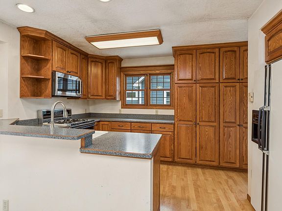 Note the seamless steel siding w/ a lifetime, transferrable warranty along w/ top-of-the-line Gutter Helmet protection & updated windows. Walk into the home through the entry foyer to the expanded kitchen & dining room w/ timeless custom crafted oak cabinets & built-in buffet plus a
