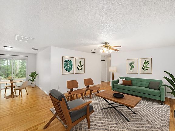One or more photo(s) has been virtually staged. Style, Space, Storage, & Shaded Comfort in NW Gainesville! 4-bedroom home with a massive carport, screened lanai, and insulated shed—all tucked beneath beautiful mature trees in one of northwest Gainesville’s most established neighborhoods. The floor plan offers easy flow between living areas, creating a relaxed space for everyday life. Step out to the screened lanai to enjoy quiet mornings or weekend gatherings overlooking a shaded, private yard. The insulated shed adds flexibility for hobbies, storage, or a workshop, while the large carport easily fits multiple vehicles and doubles as a covered project or play area. Nature lovers will appreciate being just .4 miles from Green Tree Park / Kiwanis Challenge Playground and just .6 miles from the new Hogtown Creek Headwaters Nature Park, with trails, open fields, and playgrounds. If you’ve been waiting for a Gainesville home that blends comfort, space, and a sense of place—this one delivers. Upgrades include a water heater in 2017, HVAC system in 2023, newer windows, Roof in 2008 and newer appliances. Ps: The home has a unique "pyramid" type structure in front of the house. Virtual pictures show the creative possibilities ;)