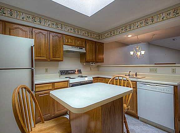 VERY WELL MAINTAINED CONDO. NEUTRAL DECOR. ISLAND,SKYLIGHT AND VINYL FLOOR IN KITCHEN. VAULTED CEILING IN LIVING ROOM,GAS FIREPLACE , AND PATIO DOOR FROM LIVING ROOM. WOOD DECK OFF PATIO DOOR. FIRST FLOOR LAUNDRY. APPLIANCES STAY