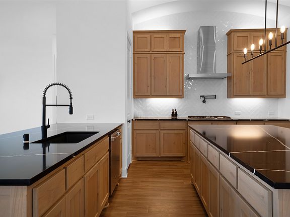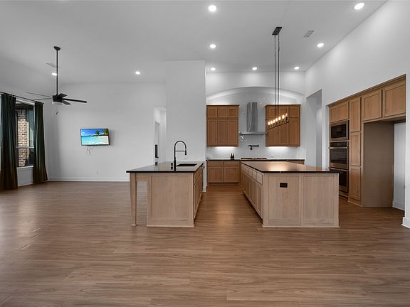 Welcome to your dream home in Sandbrock Ranch This stunning and popular 216 Highland Homes floorplan is barely lived in and is a '24 completed masterpiece offering 4 bedrooms, a private office, and a dedicated media room, all within a thoughtful split floor plan. The expansive open layout is perfect for entertaining, featuring a cozy sitting area with a striking stone fireplace, an elegant formal dining space, and a bright, airy living area flooded with natural light from numerous windows. The gourmet kitchen is a delight, boasting light wood tone cabinets, exquisite black marbled quartz countertops, a gas cooktop, large island, and dbl ovens. Retreat to the luxurious primary suite, where you’ll find a spa-like ensuite with a soaking tub, a walk-in shower, dual vanities, and a walk-in closet seamlessly connecting to the laundry room.Step outside to a large backyard oasis with a covered patio, ideal for outdoor relaxation. The house sits across from green space with no neighbor across!