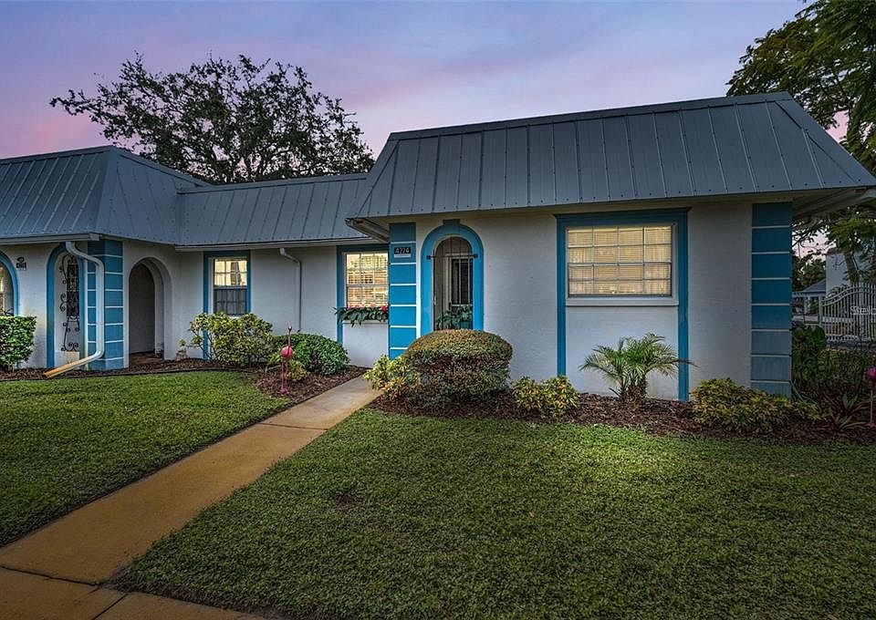 LOCATED IN THE GARDENS OF BEACON SQUARE! This UPDATED 1032 SQ FT 2 Bedroom 2 Bath and 1 car carport is nestled in the vibrant 55+ Gated Community directly across from the club house!! Kitchen has gleaming stainless-steel appliances providing a chic, functional space for all your culinary creations. Beautiful Laminate flooring flowing through most of home. With its modern touches, generous living spaces, and ideal layout, this home is perfectly suited for a vibrant, low-maintenance lifestyle in a welcoming community Step inside and discover an inviting great room, enhanced by newer laminate flooring that adds warmth and style throughout the main living areas. The updated kitchen shines with contemporary finishes, making meal preparation a delight while providing a wonderful space to gather with friends or family. The open-concept design offers a natural flow between the living, dining, and kitchen areas, creating a sense of spaciousness within the 1,032 square feet interior. Retreat to the impressive LARGE primary bedroom, where comfort meets function. Here, you’ll find laminate flooring, a large walk-in closet for all your storage needs, and a private en suite bathroom that offers a peaceful sanctuary at the end of the day. The guest bedroom also features laminate flooring and is located conveniently near the updated guest bathroom—perfect for overnight visitors or a flexible space for hobbies or a home office. Beautiful Florida room with storage closet. and outside brick patio for relaxing, Though the lot size is designed for minimal exterior upkeep, you’ll enjoy the carefree lifestyle this condo affords. Gardens of Beacon Square is a maintenance free gated community which features a heated pool & recreation center with many social activities, clubhouse, library and shuffleboard courts, laundry facility, Cable, internet, water, sewer and trash are all include in the condo fee as well! This is more than just a home; it's a lifestyle tailored to ease and enjoyment. Roof 2023...Come see this Amazing END UNIT CONDO TODAY!!