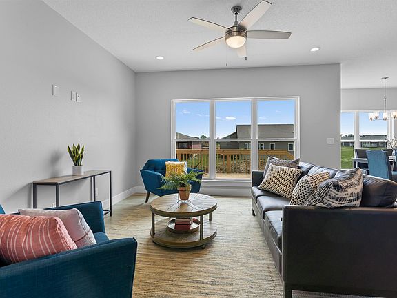 Welcome to this beautiful ranch-style home located in the highly sought after Autumn Ridge neighborhood! With three bedrooms and two bathrooms, this home offers a perfect combination of comfort and style. The open concept design of the main living area allows for easy entertaining, while the Bertch cabinets and quartz countertops in the kitchen make meal prep a breeze. The sliding doors in the dining area lead out to a spacious deck, perfect for enjoying a morning cup of coffee or hosting a summer barbeque. The master bedroom is located on the opposite side of the home from the other two bedrooms, providing a sense of privacy and tranquility. The unfinished basement offers endless possibilities for customization and personalization, making it a blank canvas for your imagination. This home is situated close to schools, parks, and trails, making it the ideal location for families with young children. The warm tones of cabinetry add a touch of modern elegance to the kitchen, while the neutral color palette throughout the home creates a cohesive and calming atmosphere. Overall, this home is a must-see for anyone looking for a move-in ready ranch-style home in a desirable neighborhood. The open concept layout and sleek finishes create a modern and chic aesthetic, perfect for those who appreciate both form and function. Don't miss out on the opportunity to make this beautiful property your own!
