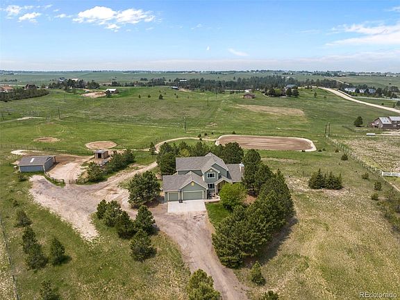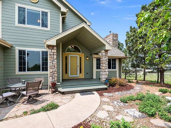 MAGNIFICENT PRIVATE HORSE PROPERTY ON OVER 6 ACRES WITH SPECTACULAR MOUNTAIN RANGE VIEWS! Enjoy real Colorado living and the convenient location of sought-after charming Pearson Ranch just 10 minutes from downtown Parker yet it feels like it’s miles away! This beautiful 4 BR, 4 BA move-in ready home with a walkout finished basement is at the end of a long driveway and surrounded by towering pine trees offering peaceful privacy and stunning mountain views from Devils Head to Longs Peak! This sprawling fenced property at the end of a cul-de-sac is zoned RA1 with a 2 ½ stall barn, 2 pastures, 1 with an arena, chicken coop, garden beds, and multiple patios and decks to enjoy relaxing sunsets over the mountains or having BBQs with your friends and family! Loads of amenities thru-out include a spectacular updated granite kitchen with stainless appliances, spacious family room with access to a big deck for enjoying those mountain views, gleaming hardwood floors, updated baths, a private primary suite with your own deck for enjoying mountain view sunsets, vaulted ceilings, an executive office with built-ins, 2 gas fireplaces, walk-in closets, and so much more! The fabulous sun-filled walk-out basement includes a bedroom and bath plus a spacious area for watching movies, playing games like foosball or pool, and exercise equipment. In addition, you can walk out to a lovely flagstone patio in your private backyard encircled by pine trees for chilling or yard games like corn hole! The three-car garage can store your cars and toys plus there is lots of parking available for all your guests or more toys! Enjoy Douglas County schools! Just 10 minutes to downtown Parker for shopping and restaurants, 20 minutes to E-470, Parker Adventist Hospital, and Southlands, plus only 40 minutes to DIA or DTC. Call today!