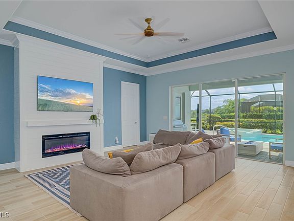 Step inside and you’ll be greeted by custom woodwork with a convenient drop zone in the entryway and gorgeous feature wall. The open-concept living area flows seamlessly through the triple sliders leading to the screened lanai, where you can enjoy a sparkling pool and spa while taking in the partial lake views.