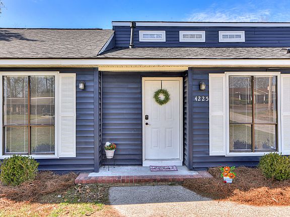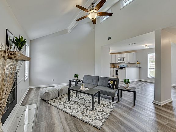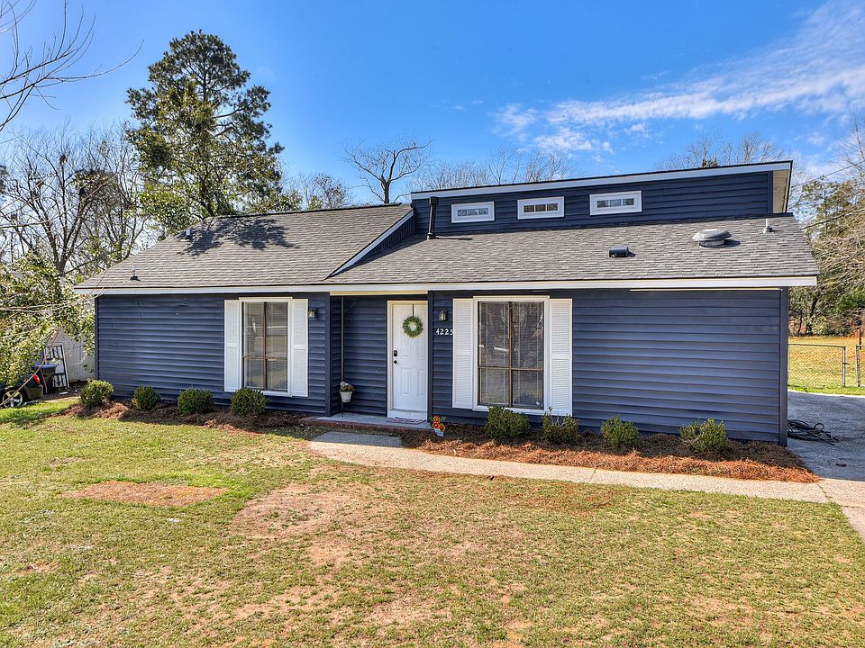 This beautifully designed 3-bedroom, 2-bathroom residence boasting 1,295 square feet of comfortable living space, is situated on a spacious .37-acre fenced lot. This property features a large outbuilding, perfect for additional storage or a workshop. Upon entering, you're greeted by the impressive cathedral ceiling and inviting dormer windows that flood the interior with natural light. The owner's suite includes two ample closets and a luxurious walk-in tile shower plus luxurious dual floating vanities and ceramic tile floors in the ensuite bathroom. The home showcases LVP flooring throughout for easy maintenance and a modern aesthetic. Enjoy the convenience of a dedicated mud room and a functional laundry room, making daily routines a breeze. Gather around the modern wood-burning fireplace with cedar mantle during chilly evenings or entertain guests at the breakfast bar overlooking the contemporary kitchen, featuring stainless steel appliances. The stylish tile wall bath/shower combo enhances the hall bathroom, while ceiling fans in all bedrooms and the living room ensure comfort year-round. Experience outstanding curb appeal and the perfect blend of functionality and style in this charming property. Conveniently located near Diamond Lakes Park and 4.5 miles from Fort Gordon Gate 5.