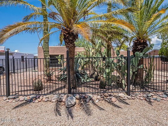 Midtown gem just 8 min from U of A via 3rd St bike route! Near Reid Park Zoo, Tucson Botanical Gardens, Wild Katz, El Con Mall & city golf. This 3-bed, 2-bath home features stone tile flooring, fresh interior/exterior paint (2025) and abundant natural light. Almost every room has ceiling fans. The 3rd bedroom includes a private entrance, half kitchenette, and its own W/D hookup. Exterior perks: wrought iron fencing, drive-in gate, and back patio wall. Recent updates: roof coating (2025), A/C + heater (2018), water heater (2024), 200-amp electrical panel (2021). Indoor laundry.