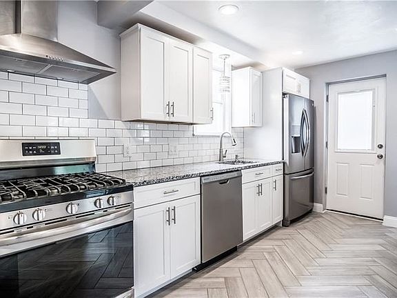 Tastefully renovated brick home, fully equipped gorgeous kitchen with granite countertops, herringbone pattern flooring, all new stainless steel appliances, gas stove, new windows, new siding, beautiful full bath with tiling, hardwood floors throughout, new exterior cement work and landscaping, Large level back yard, garage, central air.