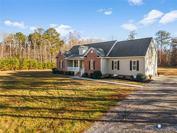 You are going to LOVE this private retreat on over FIVE private acres in Prince George County! This stunning brick front home offers the perfect blend of modern upgrades, peaceful surroundings, and space for your family! This ideal layout features a FIRST floor primary bedroom, open-concept kitchen/dining, a designated mudroom/drop zone, & SO much more! A long picturesque gravel driveway carries you to the home surrounded by mature pine trees. Step inside and admire beautiful hardwood floors that flow throughout, soaring 9-foot ceilings, and a bright living room that flows effortlessly into the rest of the home! The first-floor primary features a massive walk-in closet, trey ceiling, & en-suite bath with a double vanity & walk-in tile shower. Downstairs you will also find two more spacious bedrooms on the opposite side of the house with a full bath. Upstairs is a huge bonus room with another full bath, this room could function as a fourth bedroom or recreational space. The bonus room also has a finished hallway leading to unfinished attic storage or another future bedroom! The rear covered deck overlooks the backyard, which is full of wildlife & has ample space to garden, grill, or host family gatherings! The two car attached garage is the cherry on top! Live life surrounded by nature all while being conveniently located to Fort Lee & local amenities! Come inside and fall in LOVE!