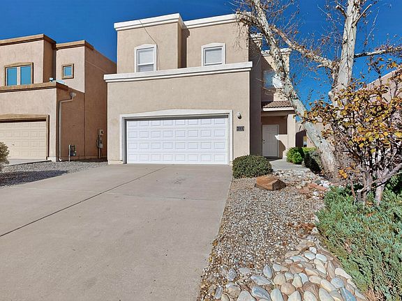 Move-in ready with No HOA in convenient close-in SE Rio Rancho location near Intel. Terrific investment with short-term (STR) or long-term rental potential. Open layout with large living room, dining area and spacious kitchen w/ generous cabinets, tile floor and built-in double ovens. Private primary suite is on the main level and features dual sinks, separate shower & soaking tub and a walk-in closet. Upstairs offers 2 additional sunny bedrooms, a full bath and a versatile loft--perfect for office, gaming or homework zone. Easy-care generous xeriscaped yard, 2-car garage and plentiful driveway parking. Neutral interior palette, great natural light, and easy access to Rio Rancho schools, shopping & dining. Great floorplan for multi-gen, roommates, work-from-home or lock-and-leave living!