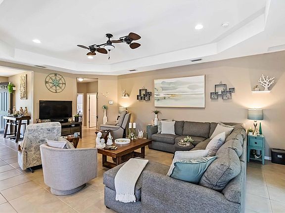 Welcome Home to Elegance & Comfort! Move-in ready and just like new, this charming 3-bed, 2-bath “Freshwater” model built in 2015 offers 1,954 sq ft of thoughtfully designed living space on a generous 6,499 sq ft lot. Nestled in a gated community, you’ll love the care and detail: freshly painted interiors, professional cleaning top to bottom, and lovely touches like tray ceilings, stone-style solid surface counters, an open floor plan with split bedrooms, and a screened lanai perfect for relaxing or entertaining. Step outside and enjoy a serene pond view from both your front porch and the screen-enclosed rear porch, soak up the Florida sunshine, or take a stroll through the community’s walking paths. This neighborhood doesn’t just look beautiful—it lives beautifully, too: resort-style pool, clubhouse, fitness center, dog park, playgrounds, lush landscaping, and more. Best of all, this home can be sold furnished or unfurnished — the choice is yours. Conveniently located just off I-75, shopping, dining, and beaches are a short drive away. With excellent schools close by and every amenity at hand, this is Florida living done right. Don’t wait – homes like this go fast!