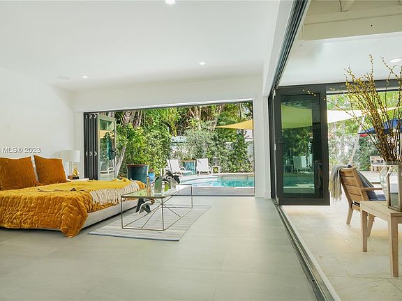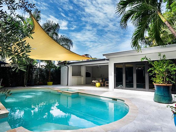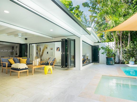 This private Miami Beach home offers a bright and spacious open floor plan and is conveniently located walking distance to 41st Street. You'll be close to restaurants, banks, stores and places of worship, as well as being within walking distance of the beach. Enjoy a private heated pool and jacuzzi surrounded by beautiful landscaping and fruit trees. The outdoor patio is perfect for entertaining with an Argentinian grill, wet bar, and plenty of seating with views of the pool. The master bedroom and living area both have folding windows that open completely to bring the outdoors in. The house is outfitted with great finishes, such as AC Diffusers and Recessed lighting, making this a great property to show.