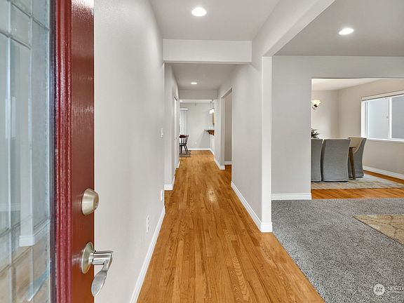 Welcome to one of the largest floor plans in the desirable King Mountain neighborhood! This great 4-bedroom, 3,277 sq ft home has room for all! Featuring NEW carpet and a freshly fenced backyard. The open-concept kitchen boasts granite countertops and stainless steel appliances, flowing seamlessly into the family room with vaulted ceilings and a cozy gas fireplace. Upstairs, the primary suite offers a second gas fireplace and large ensuite bath. Find three additional spacious bedrooms upstairs too. Enjoy outdoor living in the expansive, flat yard backing onto a tranquil greenbelt, complete with a large deck perfect for entertaining. Additional amenities include air conditioning and real hardwood flooring. Move-in ready and waiting for you!