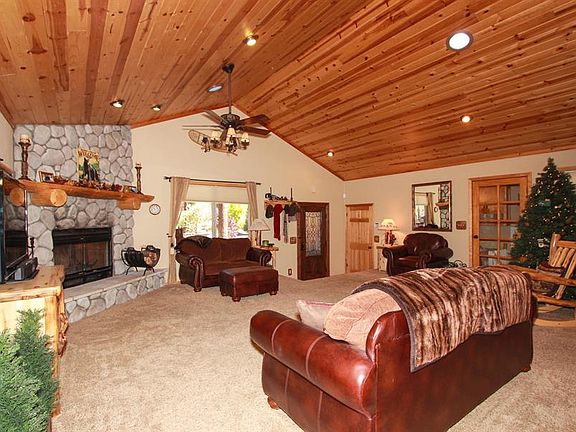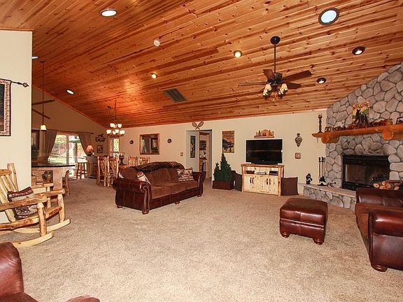 Buried in Pine & Fruit Trees, this park like setting has 2 cabins on apx 1.4 Acres (could be divided) with a natural stone brook running through, fenced yards, RV/Boat parking, winding drive to a logged 3/2 Main Cabin w/ open floor plan, 3 decks, "Great Room" w/ high pine ceilings, nice kitchen w/ granite & huge breakfast bar, newer appliances, master bed / bath w/ jet spa soak tub, solid pine doors, pine cased windows & doors and baseboards. ++ Separate 1 Bedroom Logged Guest House w/ sleeper loft, bath & kitchen! Mass room to later add on or split and sell part! All in the most sought after location! **ask for the features & furnishings list & Call Now before it's sold like everything else!