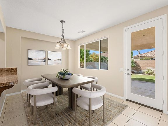 Welcome to The Desert Collection, a gated retreat nestled in the highly desirable area of North Indio--where style, space, and sunshine seamlessly come together. This charming single-story home features 3 bedrooms and 2.5 bathrooms, along with a spacious living room complete with a cozy fireplace, a dedicated dining area, and a functional kitchen with a peninsula ideal for casual meals or entertaining. Enjoy abundant natural light throughout, with brand new carpeting, fresh interior paint throughout the entire home, and new window treatments adding a modern, move-in-ready touch. Step outside to a private backyard perfect for relaxing or outdoor gatherings, and take advantage of the attached 3-car garage for extra storage and convenience. With low HOA dues, no Mello-Roos tax, and The Golf Club at Terra Lago just minutes away, this home offers both comfort and value in one of North Indio's most sought-after communities. (Some photos have been virtually staged).