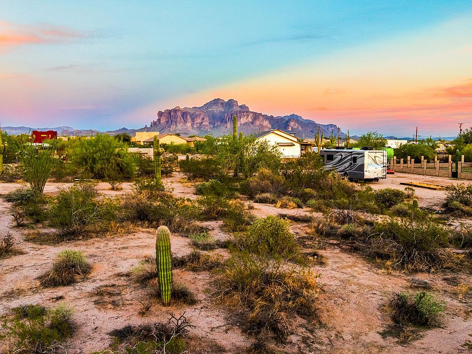 STEP INTO THE STORY OF APACHE JUNCTION. Home to the striking Superstition Mountains and the unmistakable beauty of Arizona's desert landscape. This ready-to-build 1.25-acre parcel captures everything that makes this area extraordinary: vast skies, glowing sunsets, and panoramic views that stretch from the rugged Goldfield Mountains to the twinkling city lights below. With no HOA, you have the freedom to design your lifestyle space for horses, RVs, a workshop, or the custom home you've always envisioned. The location is unbeatable minutes from Tonto National Forest, hiking, horseback riding trails and off road fun. Maybe a quick drive to Canyon, Saguaro Lakes or the Salt River to see the wild horses.