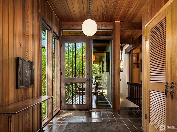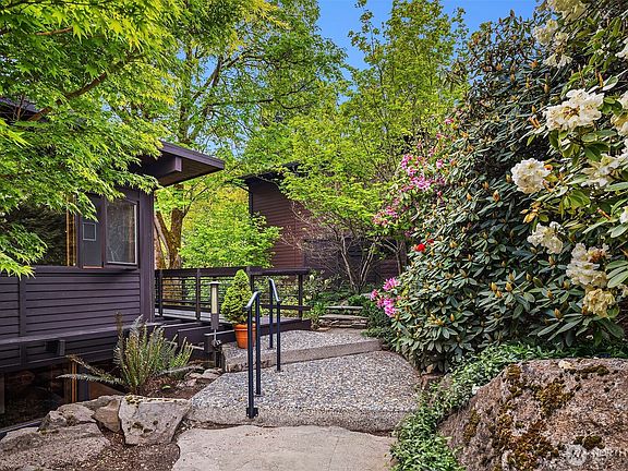 Step into timeless Northwest charm with this spacious 4-bedroom, 3-bathroom retreat, nestled on an oversized lot in Matthews Beach. Designed by Anna Williams and featured in Pacific NW magazine, this home beautifully blends privacy and a connection to nature with classic mid-century design and thoughtful updates. Enjoy modernized systems, a remodeled kitchen and bathrooms, mature landscaping, air conditioning, vaulted ceilings, hardwood floors, and large picture windows that flood the home with natural light. The generous kitchen opens to a casual dining area and family room-perfect for gatherings. Downstairs offers flexible spaces ideal for a media room, home office, library, or guest suite.
