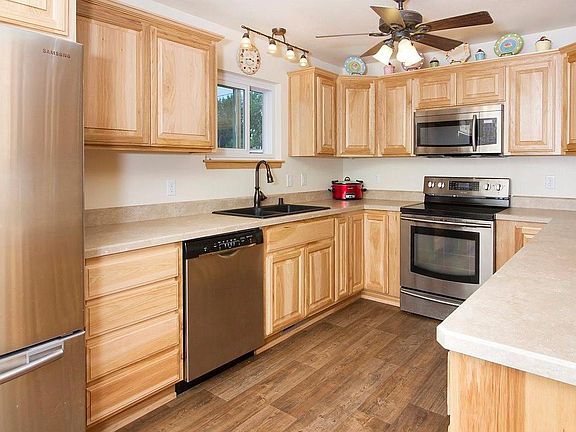 Great value in this 2184 sq ft ranch style home. Tons of upgrades including kitchen, baths, flooring, egress windows and exterior work. Main floor has a large master suite with walk-in closet, 2nd bathroom, dining, lrg living rm & kitchen. Basement has 2 beds with egress windows, laundry and family rm currently used as a craft room. The garage is a tandem oversized double with doors on both ends and plenty of work space. xtra parking behind fence. Well on property but seller's haven't used.