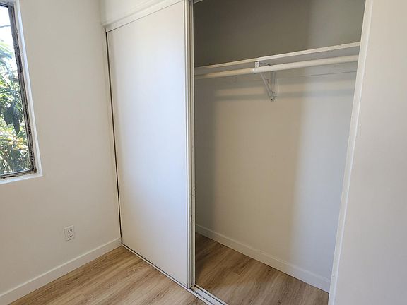 At Approx. 610 sq.ft of inside living space this 2 bedroom 1 bath unit has been remodeled with new cabinets & quartz countertop, new paint, new plank flooring throughout, new stainless steel kitchen sink and new kitchen faucet. Bathroom has new toilet, cabinet, counter and faucet and medicine cabinet. Bedrooms are large with lots of closet space and for extra storage space there is a cabinet in the hallway. Wall heater. 2 parking spaces included. Laundry room on premises.