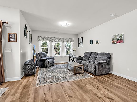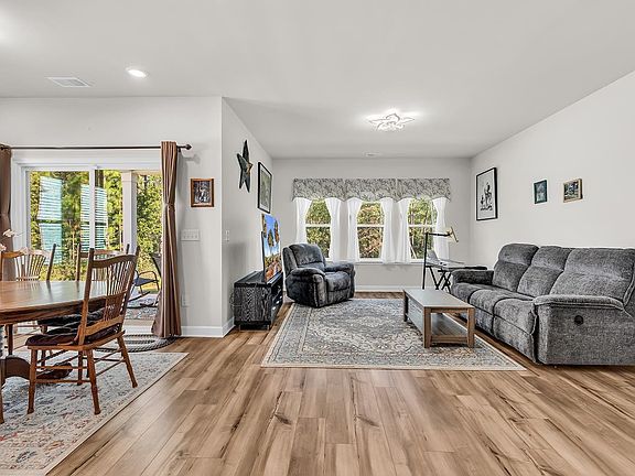Welcome to this beautiful 4-bedroom, 2-bath ranch home in the highly sought-after Clear Pond community, built in 2023. Designed with an open-concept layout and soaring 9-foot ceilings, this home is filled with natural light and modern finishes. Luxury plank flooring flows throughout the main living areas and extends into the 4th bedroom, adding both style and durability. The chef’s kitchen features granite countertops, a spacious island with breakfast bar seating, a gas range, and a walk-in pantry—perfect for cooking and entertaining. The primary suite offers a tiled walk-in shower, dual sinks, and a generous walk-in closet with convenient access to the laundry room. Step outside to enjoy the private, wooded backdrop from the covered rear patio—an ideal space for relaxing or hosting guests. Clear Pond offers a vibrant lifestyle with resort-style amenities, including pools, a clubhouse, fitness center, playground, and more—all just minutes from shopping, dining, and the beach.