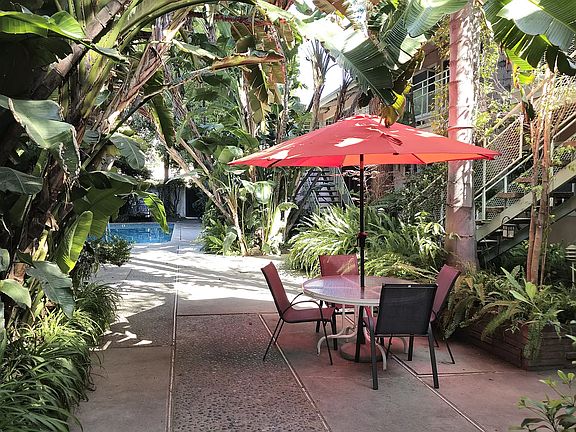 WELL MAINTAINED TROPICAL STYLE APARTMENT BUILDING SURROUNDED BY LUSH GREENERY and POOL -- VERY PRIVATE.