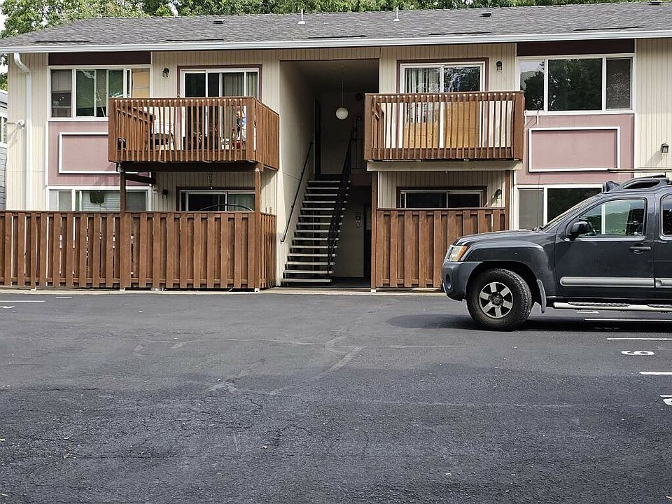 1 bedroom, 1 bathroom newly remodeled upstairs unit. New carpet throughout the apartment, freshly painted, new blinds and ceiling fans throughout the apartment. New kitchen cabinets , new kitchen floors. Microwave above stove, self cleaning oven, dishwasher, and garbage disposal. New bathroom floor, new bathroom vanity, nice glass shower doors. Locking mailboxes, off street parking for one car, laundry room that locks, close to max, shopping, restaurants, and downtown. Owner/manager lives close by in case of emergency.