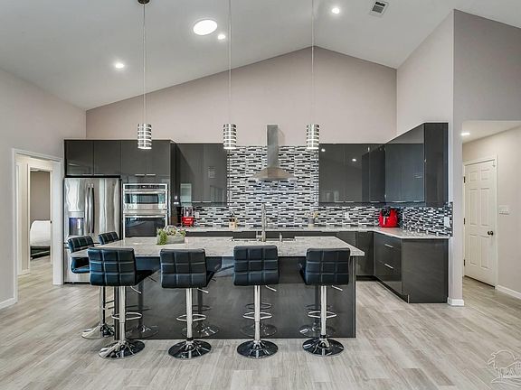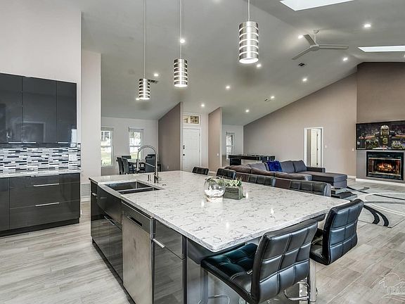 High elevation brick home with boat dock, lift and separate boat launch. Home renovated a few years ago, very nice. All new interiors. Fully furnished, all appliances convey. Beautiful new kitchen with quartz counter tops, stainless steel appliance and tile flooring throughout home and sun room. The sun room is not included in the square footage. Open design with amazing views and sunsets. This home has a split design, luxurious master suite and bathroom with separate shower and soaking tub. Built ins in the master closet. Home sits on large lot over half an acre, has beautiful sunsets, high elevation ( X zone) flood insurance is not required but always recommended. Neighborhood also has a boat launch, Bal Alex Boat Ramp. There are no restrictions in Bal Alex, so bring the RV or boat. No HOA. Gulf Breeze schools, Shopping and retail very near and Navarre Beach is about 20 minutes away. Fish from your dock and launch your boat from your own private boat ramp. Boat lift and jet ski lift. Wood burning fireplace. All bedrooms have walk in closets. Side entry large oversized 695 sf 3 car garage.