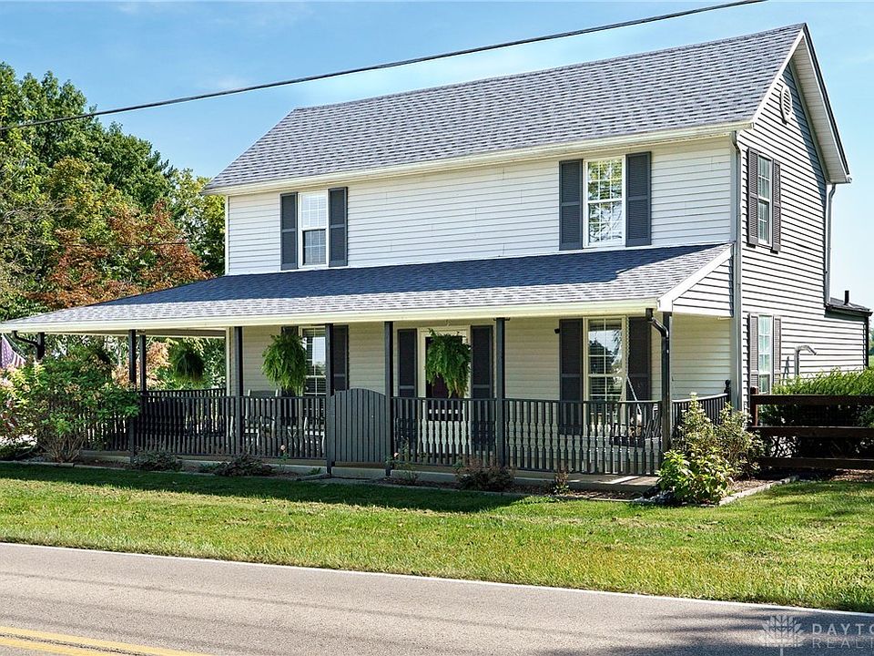 This Springboro Schools farmhouse is the real deal. Showcasing a wrap-around porch that turns heads, timeless character, and .69 acres of private, fully fenced living. It’s where classic charm collides with modern upgrades to deliver style, comfort, and convenience without compromise.The 28x40x12 pole barn takes this property to the next level with upgraded 100-amp service, electric space heater, fans, 9,000lb lift, 50-gallon air compressor, new concrete, and new garage doors. An 11x40 gravel pad behind the barn is perfect for campers or trailers, making the space as functional as it is impressive. Recent upgrades seal the deal: roof (2023), HVAC (2021), water heater/softener (2023), bathroom renovation (2024), appliances (2025), mudroom renovation (2025), and fresh landscaping (2025). Opportunities like this don’t stick around. Farmhouses with this level of character, updates, and versatility in Springboro Schools are rare. Claim it before it’s gone.
