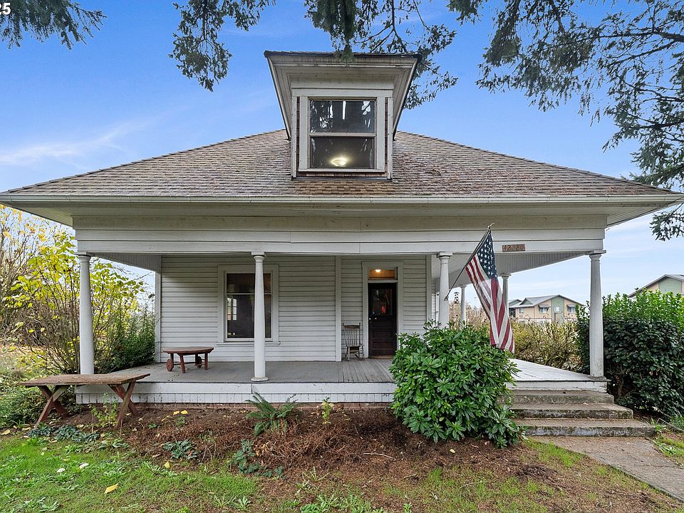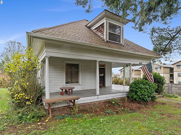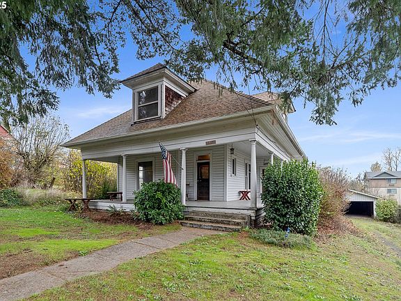 Country living within city limits! Nestled on a generous 1.08-acre lot, this charming 5-bedroom, 2-bath farmhouse offers timeless character, modern comfort, and exciting future potential. Step inside to discover a warm, inviting layout that supports main-level living with a large kitchen and breakfast nook, formal dining room, living room, family room, bedroom, and full bath. Upstairs, you’ll find the primary suite, three additional bedrooms, a second full bath, and a cozy sitting area—ideal for a home office, reading nook, or play space. Enjoy year-round comfort with a heat pump, and relax by the pellet stove on cool winter days. The basement provides ample room for storage or a workshop, while the detached garage, complete with its own electrical panel, offers flexible space for vehicles, hobbies, or equipment. Outside, experience the beauty of country living on this premium lot featuring mature pear, plum, apple, walnut, and fig trees—something to enjoy in every season. The on-site irrigation well keeps your landscaping lush and vibrant year-round. Located near the Banks-Vernonia Trail for biking, hiking, and equestrian recreation—and with easy access to Portland, Nike, Intel, and the Oregon Coast—this property offers the perfect balance of rural charm and city convenience. Be sure to inquire with the City of Banks about the flexible zoning and development potential of this exceptional property—truly a rare find combining lifestyle, location, and opportunity.
