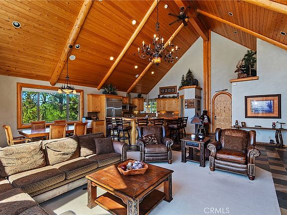 An elegant mountain retreat with unmatched views ~ Welcome to your Big Bear sanctuary, a five-bedroom masterpiece built in 2004, perfectly positioned on a peaceful cul-de-sac in the highly sought-after Castle Glen Estates, one of the most desirable neighborhoods in all of Big Bear ~ Designed with both relaxation and adventure in mind, this home offers the ultimate blend of comfort, luxury, and nature ~ Inside, soaring floor-to-ceiling windows invite natural light and frame breathtaking views of the surrounding forest and ski slopes, while slate flooring adds timeless sophistication to the open-concept design ~ Expansive living spaces and an enormous game room filled with pure fun, create the perfect atmosphere for entertaining, while a private hot tub offers the ultimate retreat after a day of adventure ~ You can’t miss the oversized four car garage with room to store all your mountain toys ~ Out back, the property opens to private acreage with beautiful viewa ~ From your southwest-facing deck, you’ll enjoy golden sunsets, panoramic forest and ski-slope views, and dazzling night skies filled with shooting stars ~ Towering pines and dramatic boulders complete the serene mountain backdrop, all while being just minutes from Big Bear’s activities ~ For summer fun, the nearest marina is only a two-minute drive making boating, fishing, and lakeside relaxation effortlessly accessible ~ Children can safely play and ride bikes along the quiet cul-de-sac while you savor peaceful evenings surrounded by nature ~ This exceptional retreat in Castle Glen Estates is more than a home it’s a lifestyle ~ Whether used as an investment, full-time residence or seasonal getaway, this home is waiting for you to make it your own ~ All furnishings can be included ~ Come enjoy Big Bear in luxury.