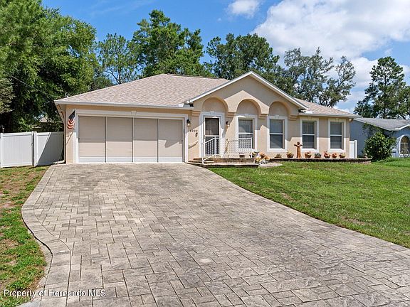 Motivated Seller!! This property offers a serene retreat just 40 minutes from bustling Tampa. Boasting a spacious 2,728 sq ft of living space, this 4-bedroom, 2-bathroom home with a 2-car garage sits on a .23-acre lot, providing ample room for both indoor and outdoor living. Step inside to discover a seamlessly integrated living room and dining area, and family room perfect for hosting gatherings or unwinding after a long day. The kitchen, complete with a charming breakfast nook, wood cabinets, double pantries, island with prep sink, and tiled backsplash. Retreat to the master bathroom, featuring a garden tub and separate shower for ultimate relaxation. Sliding doors beckon you to the covered porch, an ideal spot for enjoying the outdoors in comfort. Indoor laundry room with new washer and dryer. With its inviting living spaces, this home embodies the essence of comfortable living and is ready for your personal touches. Recent updates include a roof replacement in 2022 and a new AC unit in 2020. Pavered driveway, front porch and back patio. Fully fenced backyard, vinyl white. Conveniently located close to US 19, Veterans Expressway, and all essential amenities.