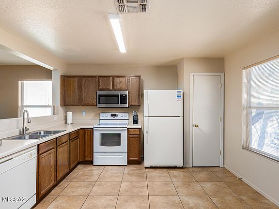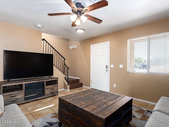 Lovely 3 bedroom/2 bathroom home located in the desirable community of Riverhaven, within walking distance of the River Walk ''The Loop'' biking/walking trail. The home opens to a flowing floor plan that includes a cozy living room, spacious eat-in kitchen with ample counter space, and sliding doors to the covered patio to enjoy the private backyard and mountain views. Throughout the living areas you will find tile flooring with carpet in the bedrooms. The primary suite is located upstairs, and includes a private ensuite, with two additional guest bedrooms for family or visitors alike. Riverhaven offers lush greenery, charming landscapes, and a convenient central location with close proximity to biking/walking paths, JCC, Banner Medical Center, TMC, U of A, shopping, and restaurants. Residents can enjoy the community's amenities, including parks, walking trails, and nearby recreational facilities, all contributing to a balanced and vibrant lifestyle.