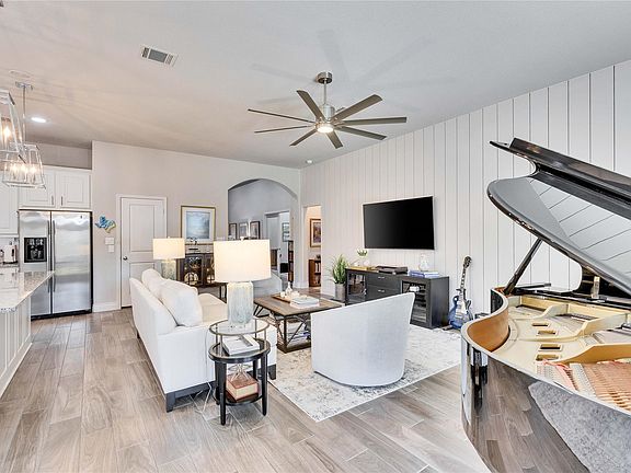 First phase of the Hilltop Section in Wolf Ranch for easy access and exit! Welcome to an exceptional single-story residence nestled within an award-winning master planned community in Georgetown. Perry’s popular 2420 plan offers 2,420 square feet of thoughtfully designed living space featuring 4 bedrooms and 3 full bathrooms and a flex space! Built by a quality builder known for superior craftsmanship, this home showcases attention to detail throughout. The inviting living area is enhanced with elegant shiplap walls that add character and charm, while custom plantation shutters adorn the windows. Abundant natural light flows through the home, creating a warm and welcoming atmosphere. Beyond the standard features, this property includes a versatile flex room perfect for a home office, playroom, or gym. The practical 3-car tandem garage provides ample space for vehicles and storage. Step outside to appreciate the quality landscaping, complemented by custom gravel and pavers that enhance the side yard. The neighborhood is truly special, offering a wealth of amenities including a community pool, gym, clubhouse, and scenic walking trails. Golf enthusiasts will appreciate the nearby course for weekend recreation. This home enjoys a favorable location within the community, positioned near the entrance for easy access. Georgetown offers the perfect blend of small-town charm with convenient amenities. The surrounding area provides excellent shopping, dining, and outdoor recreation opportunities, making this location ideal for families and professionals alike. Experience the epitome of comfortable, sophisticated living in this exceptional Georgetown home.