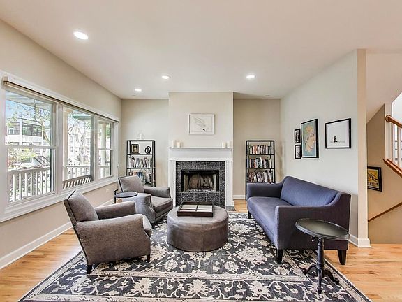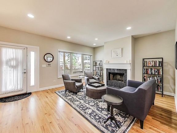 Charming home with a front porch that leads you into this extra wide single-family home. The living room has the first of 2 fireplaces, this one is wood burning. The beautiful kitchen has been updated with Carrara Quartz counters, Herringbone marble back splash, stainless steel appliances, a huge breakfast bar and so much countertop space that the cook in the house will swoon. Kitchen opens to a spacious dining area and a massive family room with the 2nd fireplace. Additionally, there is a deck off the family room which is perfect for enjoying the sunshine or grilling. The upper level of the home has 3 nice-sized bedrooms and a full-size laundry room with side-by-side washer and dryer. The large primary bedroom features a walk-in closet and luxurious bathroom with double vanity, jetted tub and separate shower. The very bright lower-level features 9-foot ceilings, a massive family room with wet bar, 4th bedroom, guest bath, and a storage closet which is plumbed for a second laundry should one need. Close to Francisco Brown Line. This is a beautiful house in a vibrant location!