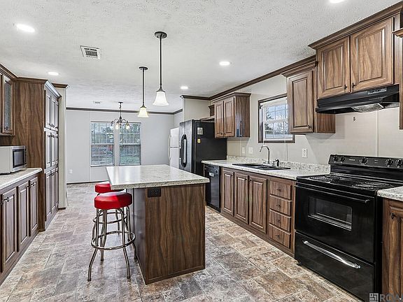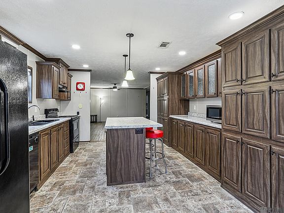 8 yr old Mobile home on .67 acres! Flood zone X. Large covered patio area with wheelchair accessible ramp. LVP flooring, walnut cabinets, can lights, pendant lights over island, 2 refrigerators and an upright freezer! Primary bedroom is large and has a walk in closet, with en suite bath area featuring a garden tub and separate shower. Call now for your private showing. This one won't last!