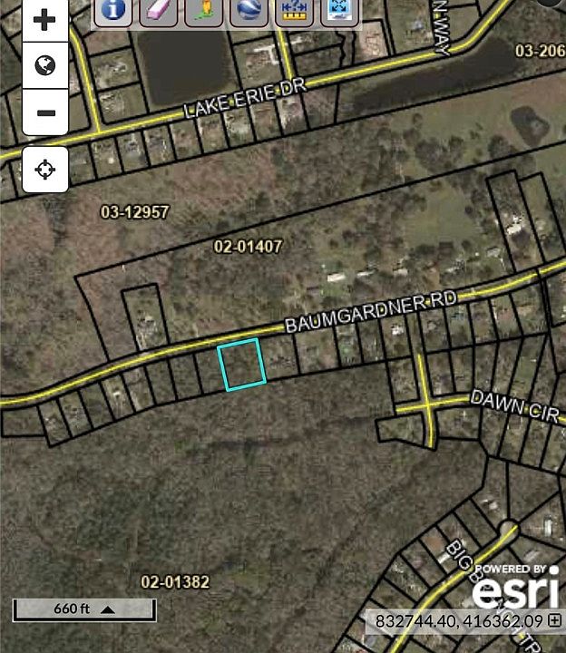 Looking to buy a lot to build a home? This lot is .81 in size...wooded so you can pick your spot. Lot boarders Baumgardner Road. Public water is available and Septic tank is approved in Declaration. Mobile Homes are not allowed per declaration. Plat and Declarations are in documents..Go look any time.