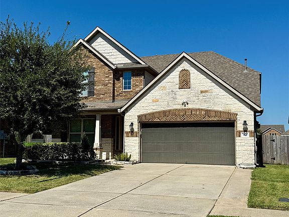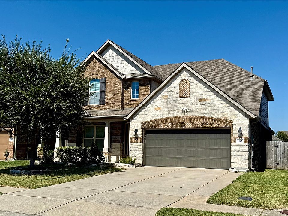 Welcome to this exceptional 4 bedroom, 2.5 bath home featuring a private office/study and showcases a beautiful brick-and-stone elevation. Enjoy relaxing on the inviting front covered porch, perfect for unwinding after a long day. Step inside to a grand entry open to below that flows into a spacious family room and a stunning kitchen. The kitchen features an oversized island with quartz countertops, ample cabinetry, a large pantry, and modern finishes ideal for both everyday living and entertaining. The open concept layout offers high ceilings and abundant natural light from the many windows throughout. Primary bedroom features an en-suite bath complete with a soaking tub, separate walk-in shower, dual sinks, and a vanity area. The outdoor covered patio and generous backyard are perfect for gatherings and family fun. This home perfectly combines style, comfort, and functionality!