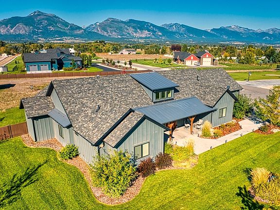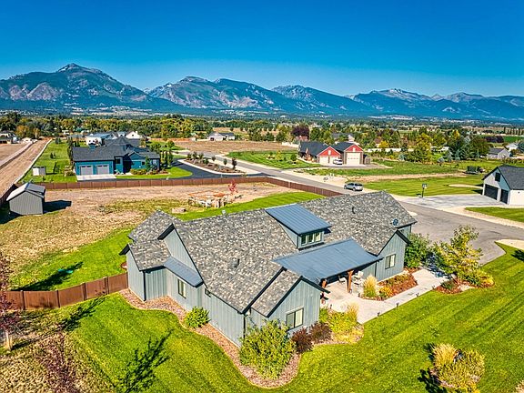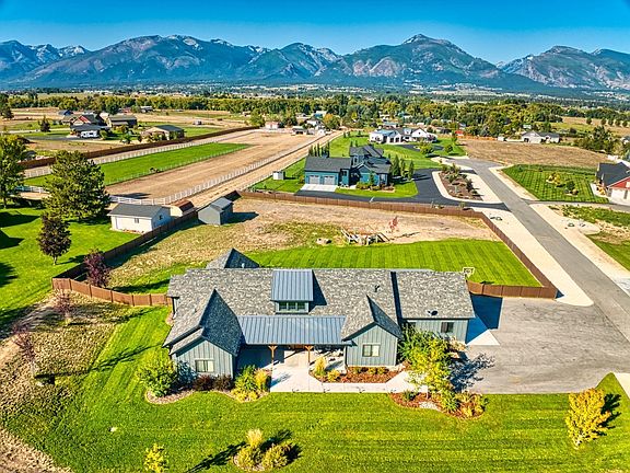 Panoramic views of the Bitterroot Mountain range with glorious sunsets. The property is on the Eastside of the Valley in a very desirable area of Corvallis. Modern, custom home built in 2020 featuring 3,302 +/- SF of living space and 4 bedrooms/3 bathrooms. Open floor plan, very welcoming with beautiful architectural features, vaulted ceilings, wood beams, stacked stone fireplace and mantle, lots of windows to bring the outside in. Big, cook's kitchen w/expansive island, pantry, beamed ceiling and lots of storage. Beautiful tile work and other finishes. Large, covered outdoor patio that is accessed from the dining/kitchen area - a great spot for outdoor dining and large gatherings. Nicely done landscaping and greenbelt areas with underground sprinklers. A garden for farm to table meals. 15X20 shed building for addl storage. Access gate to back area to park your trailer or boat. Paved Roads and easy access into downtown Hamilton downtown, shopping and services. Perfection!
