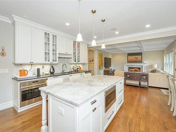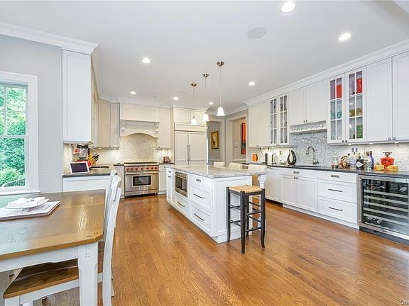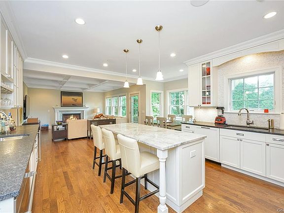 Four year young Colonial-ready to move in. Built by prestigious local builder D&A Development and Design. An inviting front yard welcomes you to 5 bedroom, 4.5 After entertaining on a generous outside patio you'll enjoy bringing it inside to the gourmet Chef's kitchen featuring Wolf and Sub-zero appliances, relax in you family room with a gas fireplace, then take it down stairs to your media room and spend some time watching a good movie or playing in a large play room with radiant heat floors and kitchenette. The second floor Master Bedroom has a gas fireplace, large walk-in closet and bath with radiant heat floors, soaking tub and steam shower. Three additional bedrooms and large laundry room with sink and cabinets. The finished basement has 9' ceilings, radiant heat floors, full bath, playroom, media/exercise room, kitchenette and bedroom. Close to school, golf and pool. Buyer to pay NY state transfer tax. Also available for rent MLS#6054815.
