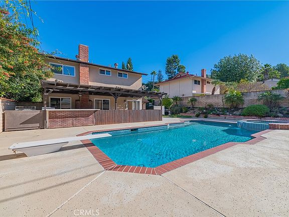 The home includes a first-floor bedroom, suitable for guests, in-laws, or home office use. The primary suite features double closets and an updated bathroom with dual sinks. The large, flat, and private backyard offers a covered patio and a sparkling pool, providing ample space for outdoor use or potential expansion. Conveniently located near major freeways (60/10/71/57), Cal Poly Pomona, Mt. SAC, and shopping centers.