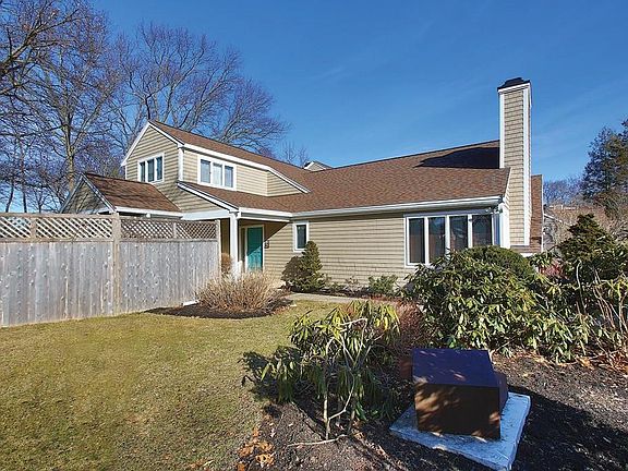 The coveted Gables. Privately sited, and rarely available, is this spacious and bright townhouse with a first floor master bedroom. The generous sized master bathroom with extensive granite floor and cabinetry boasts a Jacuzzi tub and an over sized walk-in steam shower. The cathedral ceiling living room with a wood burning fireplace leads to an elegant dining room with sliders to a spacious wrap around deck and a patio. There is a second wood burning fireplace in the first level den with an open bar area. The 2nd level features two bedrooms, a full bathrooms, and 2 skylights. The elegantly finished lower level boasts a family room with a circular over sized wet bar area, an adjoining game room set up with a regulation size pool table, a half bathroom, and a large unfinished storage area. This meticulously maintained and updated end unit is surrounded by an expansive wooded area. The Gables community features a club house, tennis courts, and beautiful in-ground pool.