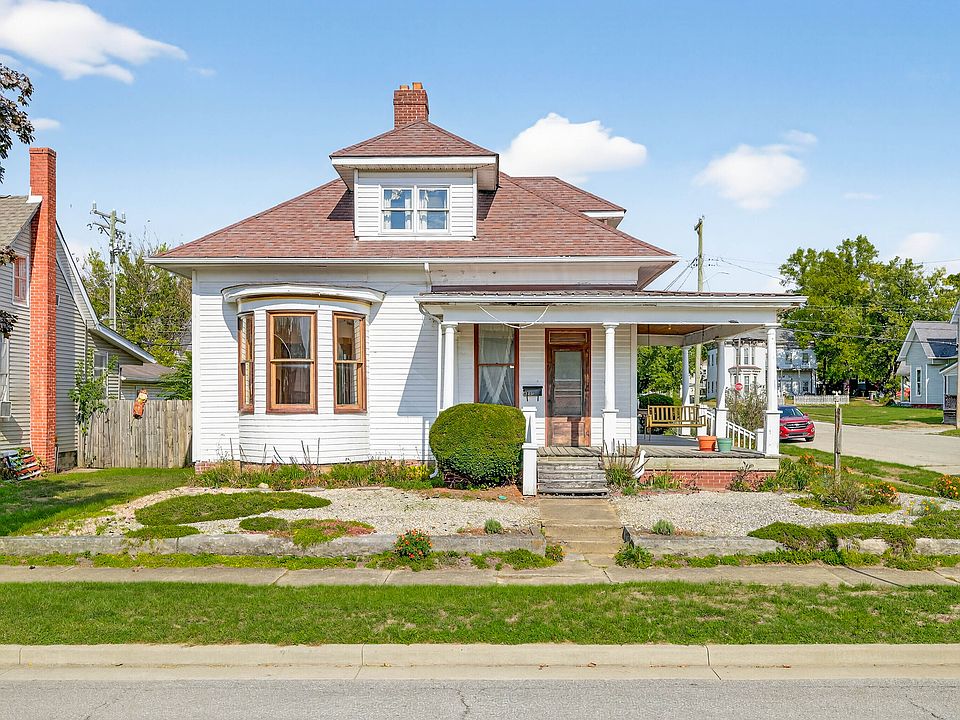 "They just don't make them like this anymore" - a 5 Bedroom 2 Bath Home where this saying rings true peering out the curved architecture statement windows that adorn the front of the home and even as you mosey through the halls. Formal Dining, Den/Library Room, 35' Recreational space upstairs and closets in the upstairs rooms the size of bedrooms! The options are endless how you can define this space as your own. At one time, chairs and little feet lined the porch. Over 30 years of ownership where the seasons of life in this home raised children, was a craft store, and even remnants of the wall magnets where it served as a daycare. Hardwood Floors, transom windows over the doorways, bay windows, brushed brass hardware and 3 ply thick original doors. Ornate trim that has seen more Holiday Dinners around the fire than anyone viewing reading this description. The home undoubtedly comes with needing some TLC - though aging gracefully has chipping paint, and other aged aesthetics. The next owner should know that while elbow grease will need to be in supply, the home offers a new Heil Furnace (2024) and Water Heater (2024) - Electrical Panel updated in 2016. Fenced in Backyard with the flowers that make cottage living envious. Phlox that billows over the walls of the yard with purple blooms in spring, Marigolds, Black-Eyed Susans, Rose-of-sharon, Icebox, Lillies & so much more. Offered for Cash/Conventional loans only. See You Soon!