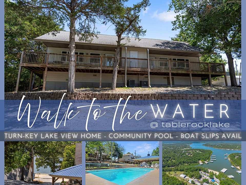 Welcome to Edgewater Villa--a summer-ready, turn-key furnished lakefront half duplex perfect for vacation rental, family retreat, or both! This rare opportunity offers stunning views, easy water access, & all the resort-style amenities your guests will love--plus the flexibility to sleep 12+ comfortably. Whether you're looking for income potential or a legacy getaway, this property delivers.Property Highlights:*Fully furnished lakefront half duplex w/ lake views & rental-ready setup*3 bedrooms / 2 baths, including main-level handicap-accessible suite*Open-concept layout w/ natural light & year-round Table Rock Lake views*Spacious kitchen w/ full appliances, stocked & guest-ready*Upper-level oversized bunk room w/ 4 full beds--room for the whole crew*Flat walk to the water in a peaceful, wooded setting*Cool lake breezes, sunset views, & abundant Ozark wildlifeOn-Site Amenities (HOA Maintained):*In-ground pool, covered pavilion for gatherings*Playground, shuffleboard, & lakeside trails*Low HOA dues incl: water/sewer, trash, landscaping, road & common area upkeepBoat Slip Option:*Up to two 10x24 boat slips avail to owner (add $65K ea)*Slips just steps from the home (not rentable to guests per COE)Location Perks:*Mins to Kimberling City, Branson & Silver Dollar City*By water: easy access to marinas, boat-up dining & fishing hot spots*Nightly rental eligible w/ subdivision approvalBonus:*More cabins, duplexes, & 7-unit condo bldg also available--ask for details!Edgewater Villa on Eagle Dr offers unbeatable lakefront value, income potential & unforgettable memories in the heart of the Ozarks.