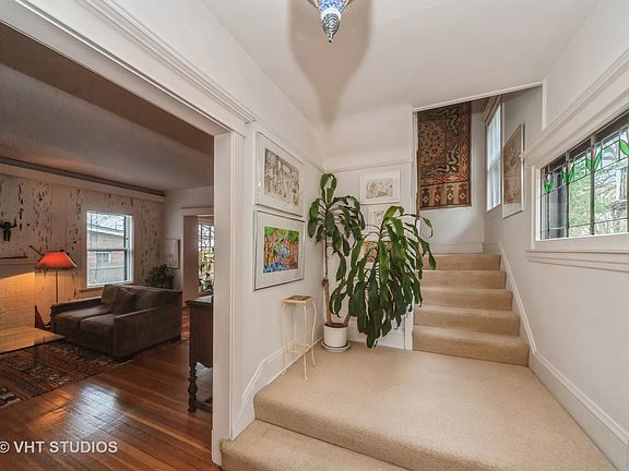 A lovely East Wilmette stucco home cherished by the same owners for more than fifty years will be available to a new owner very soon. This East Wilmette home is situated on a 50 by 196 lot. This home is beautifully situated in East Wilmette. Only a few block to the purple line and a half mile to Gillson Park, with it's Lake Michigan Beach. Well within a mile offers access to Metra in Evanston or Wilmette, golf at The Evans at Canal Shores (newly renovated), or a plethora of shopping and dining options on Central St. in Evanston or downtown Wilmette. The yard is anything but traditional. View the garden in front yard from a spacious front porch, shade gardens adorn both front and back yards, with tons of eye-catching ground cover and flowers. The fully fenced backyard has a gorgeous two-tier cedar deck (rebuilt in 2023) overlooking artwork and a small manmade brook flowing through three gentle waterfalls into a peaceful pond. A traditional foyer circa 1915 offers a choice of entering the living room or the second level. Hardwood flooring throughout the main level. Both the stairway and second floor have carpet-covered hardwood. The living and dining rooms feature whitewashed pecky cypress paneled accent walls. The living room fireplace has been converted to gas for convenience. Dining spaces include a breakfast nook and formal dining room with original built-ins. A modest, white kitchen was updated in 2006. Finishing out the first floor is an office with full bathroom and sliding glass door accessing the back deck. The carpeted second floor is laid out to accommodate four bedrooms and two full baths. The ensuite primary has a spatially efficient bathroom with shower. The primary bedroom also boasts a private sundeck. The second level full bath was tastefully renovated in 2008. The unfinished basement is about two-thirds of the home's footprint and had a dark room and currently still sports a pool table and of course, plenty of storage. Improvements over the decades are too numerous to list. This wonderful home is ready for a new chapter. Whether new owners find it ideal for their needs as presented, or have grand visions to transform it, this beauty will be available for showings late in the day September 20th through the afternoon of September 22nd. No early showings, no exceptions. The home is offered "As-Is".