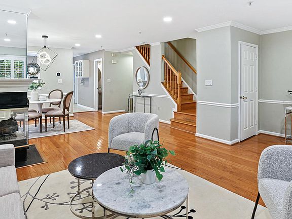 Price reduced! Welcome to this stately brick front townhome in the highly desirable Kentlands neighborhood. Enjoy the walkability of this established community with great shops, restaurants, and entertainment. Easy access to major commuter routes and public transit. Extremely close to AstraZeneca, MedImmune and NIST. The beautiful home features 4 bedrooms and 3.5 bathrooms with a deck, patio, rear fenced yard and a detached 2 car garage. The living room and open dining room are separated by a 3 sided gas fireplace with both rooms featuring recessed lighting, plantation shutters, beautiful moulding details, hardwood floors and a beautiful and updated dining room chandelier. The eat-in kitchen features granite counter tops, stainless steel appliances and access to the rear deck with ample space for multiple seating areas and views of the luscious backyard. Don't forget the main level laundry room area and half bath. The hard wood flooring continues throughout the upper bedroom level. The primary suite features a vaulted ceiling and large walk-in closet with a custom organization system. The ensuite primary bathroom is upgraded with a double sink vanity, soaking tub and walk-in glass and tile shower. The entire primary suite features recessed lighting and plantation shutters. 2 additional bedrooms and an additional full bath complete this level. The carpeted lower level is fully finished with a large recreation room, full bathroom and large 4th bedroom. There is a level walk-outl basement to the rear patio, large yard and walking stones to the detached 2 car garage. Don't miss this one.