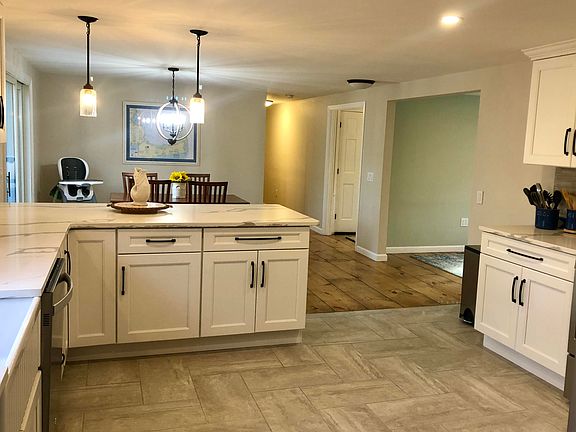 Newly renovated, bright and airy 4-bedroom contemporary Cape with almost 2700 square feet of living space. Spacious and inviting rooms include a large living room, family room with a wood-burning fireplace (also perfect for a playroom, library, media room or home office), kitchen with breakfast bar and dining area with sliders to deck and back yard. There is a first-floor bedroom adjacent to a full bath and first-floor laundry/mud room with new w/d and tile floors. Upstairs there are three more bedrooms, including a large master bedroom, and a full bath. Original, wide pine floors have been refinished to a golden glow. The sparkling kitchen has new cabinets, new appliances, tile floors, tile backsplash and gorgeous quartz countertops. New gas heat and central a/c. Both baths have been updated with new vanities, tile floors, marble countertops and fixtures. Recessed lighting has been added throughout the house. New front door, garage door, weatherization upgrades, freshly painted exterior and interiors. This charming Cape sits on a large, level lot in a beautiful Brewster neighborhood near Blueberry Pond, Cape Cod Bay, Cape Cod Rail Trail and Nickerson State Park.